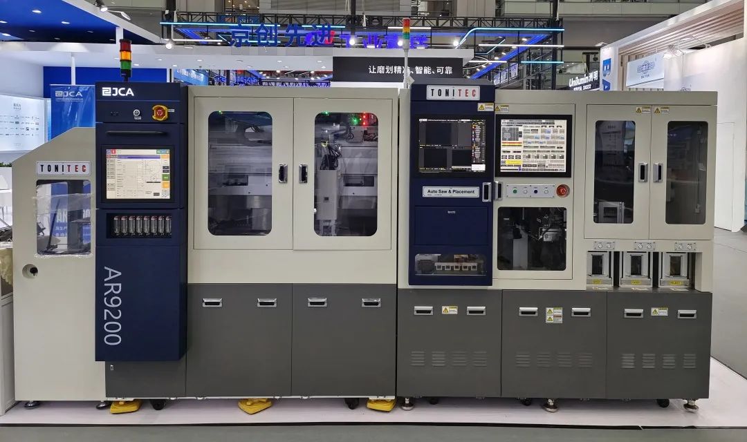 京创先进携JIG SAW切割分选一体机ARP9200,全新亮相深圳第十届电子信息博览会。双工作平台进行循环工作,提升切割效率,设备配备全自动上料,进行传输定位、对准切割、刀痕检测、清洗、干燥,实现全自动运行模式。